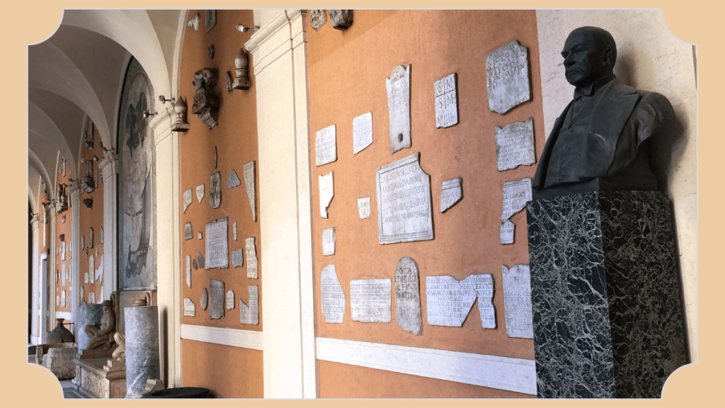 🤓Oggetto della nostra rubrica sarà proprio la collezione lapidaria che tante volte ha stimolato la mia curiosità . L’edificio che ospita l’Accademia venne realizzato nel 1912, quando il maggiore J. P. Morgan acquistò un terreno a sud di porta Aurelia per realizzarvi l’attuale edificio che sarebbe diventato la sede dell’Accademia. Il contesto suburbano su cui sorse l’Istituzione Americana, nata nel 1894 per favorire il perseguimento degli studi e della ricerca nel campo delle “belle arti” e delle discipline umanistiche, si stava riprendendo dagli eventi del 1849 di cui fu protagonista come luogo della resistenza garibaldina e del suo triste e doloroso epilogo. Già alla fine del 1800 la filantropa Clara Jessup di Filadelfia, moglie del maggiore inglese Heylard, aveva acquistato la vicina Villa Savorelli, ex villa Farnese, dove fece eseguire importanti lavori di adattamento al suo “gusto neorinascimentale” cambiandone il nome in Villa Aurelia che donò all’Accademia. Con l’aggiunta del nuovo edificio l’American Academy aveva finalmente una sede istituzionale e una di rappresentanza. L’edificio si ispirò alle architetture neorinascimentali con una loggia a tre arcate sul prospetto principale e corpi laterali aggettanti e più bassi; tra queste ali il monumentale cancello di ingresso servito da un piccolo giardino con fontana a vasca circolare. In quell’occasione vennero rinvenute le oltre duecento iscrizioni attualmente murate nel cortile.