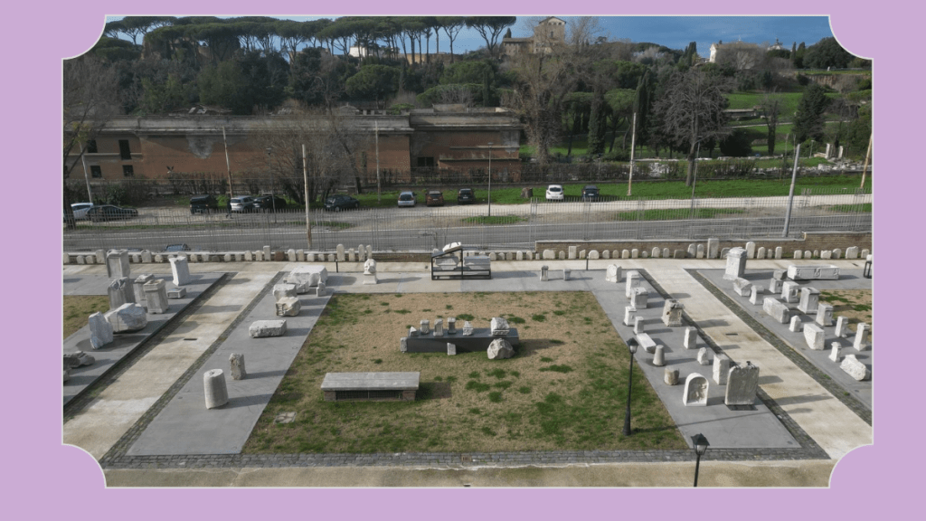 Il progetto della Sovrintendenza Capitolina ha previsto il recupero della Casina Salvi e dell’ex Palestra della Gioventù del Littorio all’interno della quale è stato possibile, vista la grande e unitaria superficie interna, disporre i pezzi ad oggi ritrovati della Forma Urbis Severiana, la più grande pianta marmorea di Roma mai realizzata. Voluta da Settimio Severo, fu realizzata tra il 203 e il 211 e collocata all’interno di una delle aule del Tempio della Pace, realizzato da Vespasiano nel I secolo d.C. e danneggiato da un incendio nel 192 d.C. La pianta era attaccata al muro e assicurata ad esso a mezzo di enormi grappe formando un enorme tassello parietale ancora oggi leggibile sulla facciata dell’aula che costituisce la fiancata del convento della chiesa dei SS. Cosma e Damiano al foro, oggi prospiciente via dei Fori Imperiali. Le dimensioni della pianta erano di 13 metri in altezza e 18 m di larghezza e si componeva di circa 150 lastre rettangolari di mano bianco di dimensioni variabili, disposte su undici file; nelle prime otto dal basso le lastre erano disposte verticalmente e orizzontalmente in alternanza, mentre nelle ultime tre erano orizzontali. Il disegno della pianta fu inciso sulle singole lastre e rubricato di rosso per facilitarne la lettura. Punto di riferimento eccezionale per l’ubicazione dei monumenti e la conoscenza topografica dell’Urbe, venne presa a martellate e smantellata nel Medioevo per farne materiale edile. Già nel corso del 1500 cominciarono ad affiorare i primi elementi della pianta che nel corso dei secoli furono raccolti e selezionati portando al recupero di poco più del 20% di questo straordinario strumento di conoscenza.