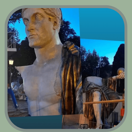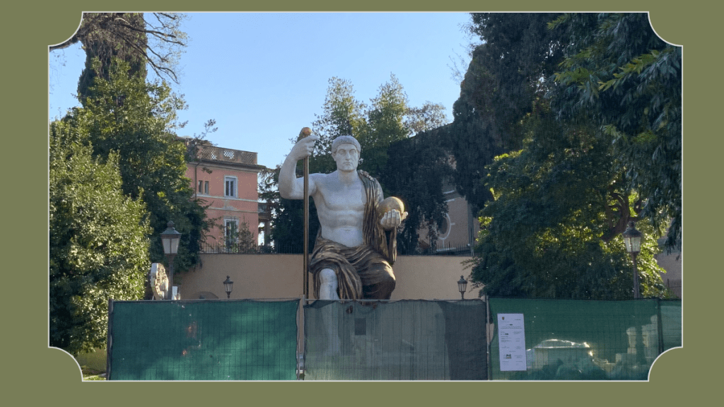Da qualche settima c’è movimento nel giardino di Palazzo Caffarelli e non si deve solamente alla bellissima mostra in corso su Fidia, “Il Maestro dell’arte classica”, ma ad un ospite d’eccezione che trova, nella nicchia antistante l’entrata al giardino, servita dal portone cinquecentesco di papa Giulio II della Rovere, una collocazione perfetta. Mi riferisco alla ricostruzione a dimensione originale dell’acrolito di Costantino, che, dalla Fondazione Prada, arriva diritto diritto a Roma sul colle capitolino. L’opera, dell’artista olandese Rem Koolhaas, era stata esposta a Milano all’interno della mostra “Recycling Beauty” di Salvatore Settis e Anna Anguissola con il finanziamento della Fondazione Prada conclusasi nel febbraio del 2023.