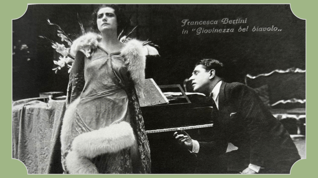 Il suo nome d’arte, Francesca Bertini, le venne cucito addosso da Edoardo Scarpetta, il più importante attore e autore del teatro napoletano tra la fine dell’Ottocento e i primi del Novecento, capostipite della dinastia teatrale degli Scarpetta-De Filippo, che la volle, giovanissima, nella sua compagnia teatrale, ma Francesca sognava la macchina da presa e le eroine dannunziane.